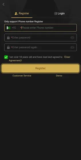 - Tap the “Register” button to create a new account.